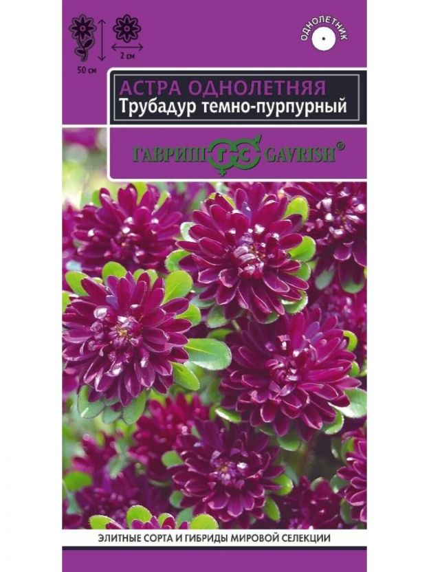 Семена Цветы, Астра, Трубадур, 0.05 г, Эксклюзив Н22, темно-пурпурные, цветная упаковка, Гавриш