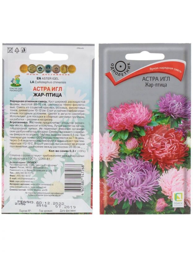 Семена Цветы, Астра, Жар-Птица, 0.3 г, цветная упаковка, Поиск