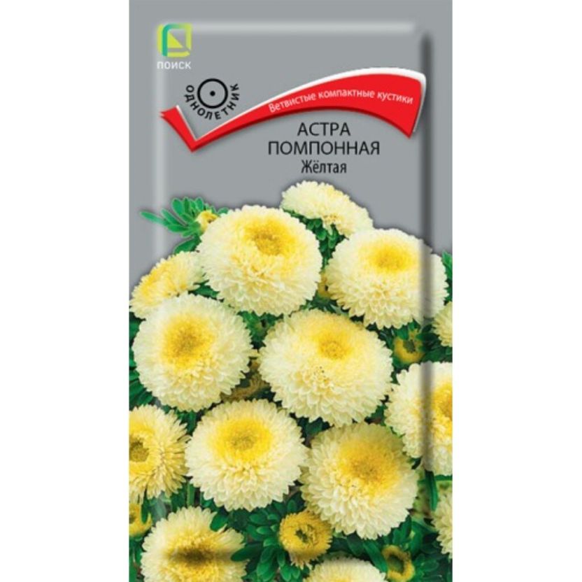 Семена Цветы, Астра, Желтая, 0.3 г, помпонная, однолетняя, цветная упаковка, Поиск