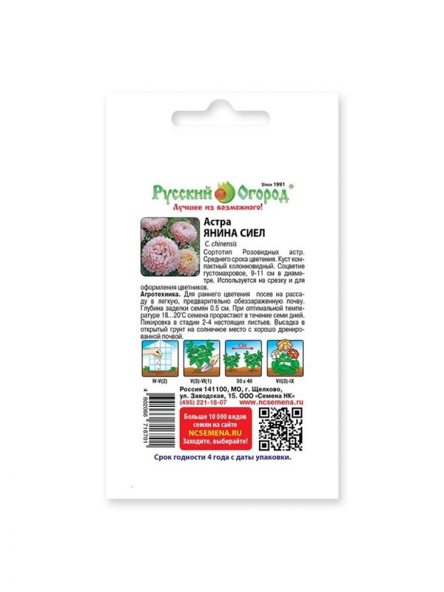 Семена Цветы, Астра, Янина Сиел, 0.3 г, цветная упаковка, Русский огород