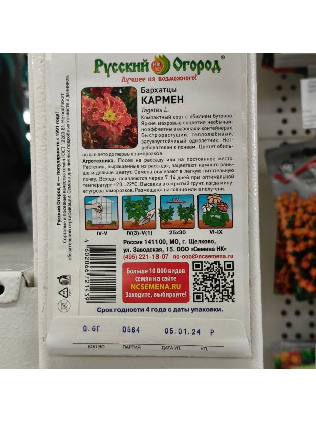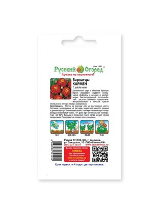 Семена Цветы, Бархатцы, Кармен, 0.6 г, 200%, цветная упаковка, Русский огород