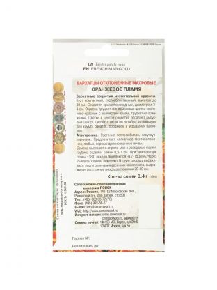 Семена Цветы, Бархатцы, Оранжевое пламя, 0.4 г, цветная упаковка, Поиск