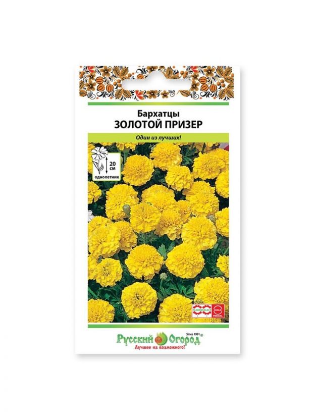 Семена Цветы, Бархатцы, Золотой призер, 0.1 г, цветная упаковка, Русский огород