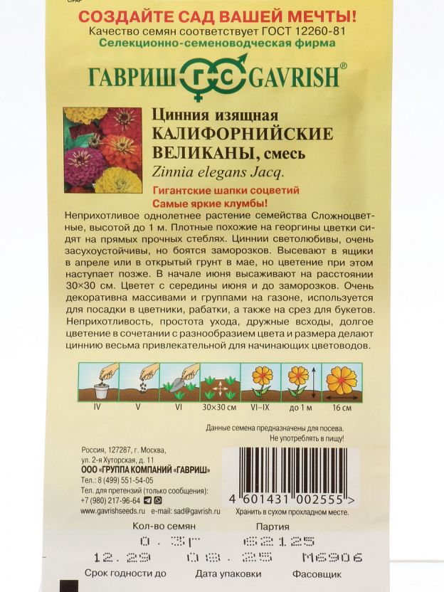 Семена циннии Калифорнийские великаны от бренда Гавриш — это проверенное решение для тех, кто ищет недорогой способ создать яркий цветник на даче или возле дома. Смесь однолетних сортов отличается крупными, махровыми цветками и устойчивостью к жаре, что особенно важно для российских климатических условий. Если вы ищете, какой сорт циннии выбрать для солнечного участка, обратите внимание на эту смесь: она быстро всходит и радует обильным цветением до осени.