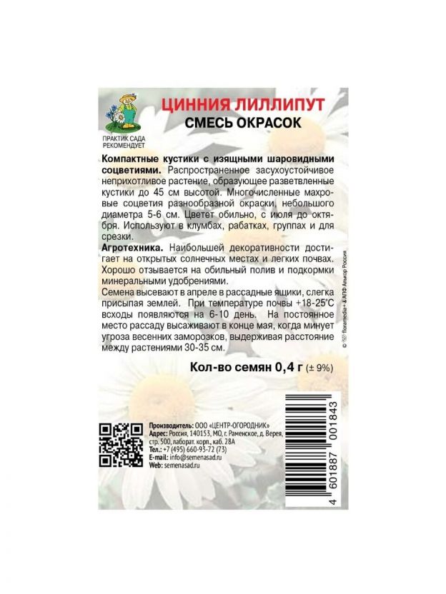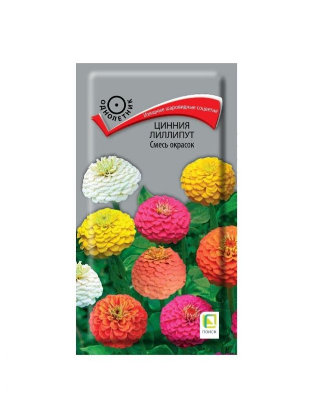 Семена Цветы, Цинния, Лиллипут смесь окрасок, 0.4 г, цветная упаковка, Поиск