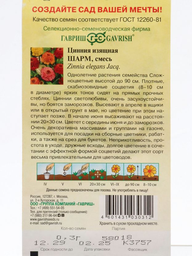 Какой жизненный цикл у семян циннии Шарм?
