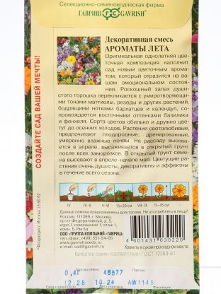 Семена Цветы, Декоративная смесь, Ароматы лета, 0.4 г, цветная упаковка, Гавриш