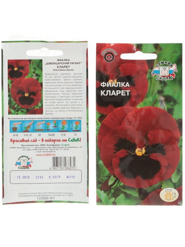 Семена Цветы, Фиалка, Кларет, 0.05 г, цветная упаковка, Седек