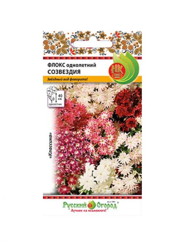 Семена Цветы, Флокс, Созвездия, 0.2 г, однолетний, смесь, цветная упаковка, Русский огород