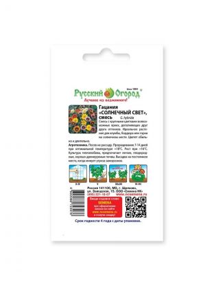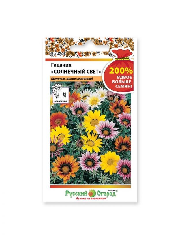 Семена Цветы, Гацания, Солнечный свет, 0.2 г, 200%, смесь, цветная упаковка, Русский огород