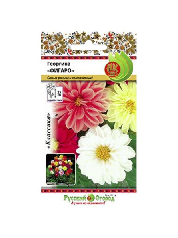 Семена Цветы, Георгина, Фигаро, 0.2 г, смесь, цветная упаковка, Русский огород
