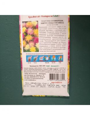 Семена Цветы, Георгина, Скоморохи, 0.2 г, кактусовидная смесь, цветная упаковка, Седек