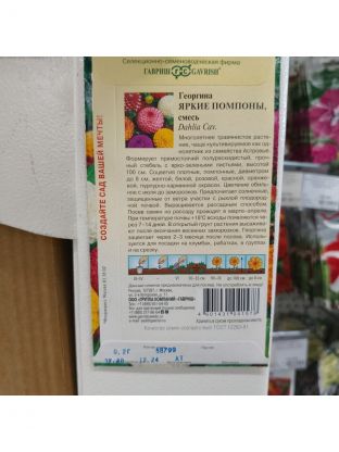 Семена Цветы, Георгина, Яркие помпоны, 0.2 г, Цветочная коллекция, цветная упаковка, Гавриш