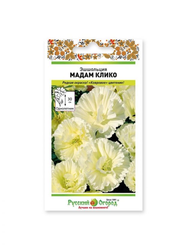 Семена Цветы, Эшшольция, Мадам Клико, цветная упаковка, Русский огород
