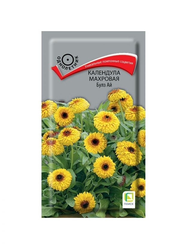 Семена Цветы, Календула, Булз Ай, 0.1 г, махровая, цветная упаковка, Поиск