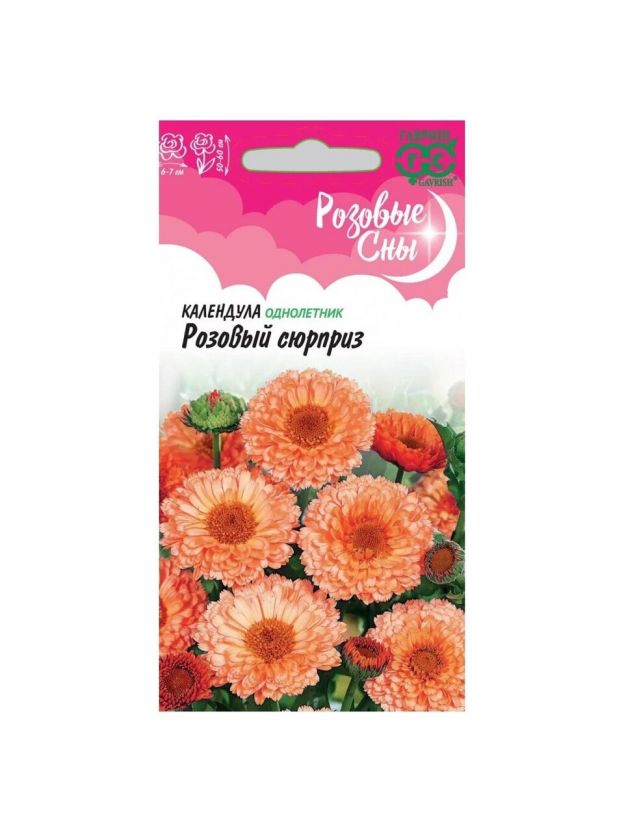 Семена Цветы, Календула, Розовый сюрприз, 0.3 г, цветная упаковка, Гавриш
