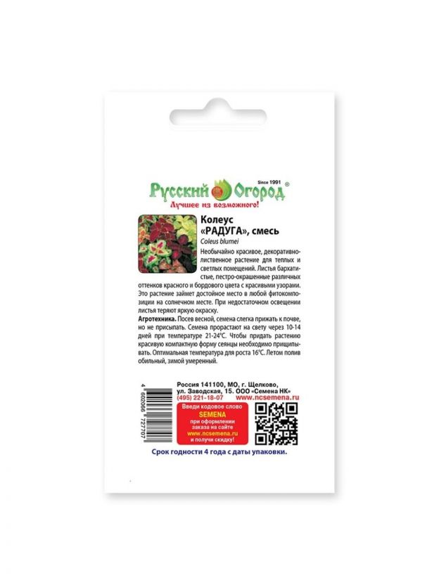 Погрузитесь в мир ярких красок и изысканных садов с семенами Колеус Радуга от бренда "Русский огород"! Эти многолетние цветы создадут неповторимую атмосферу в вашем саду или на балконе, радуя глаз разнообразием оттенков.