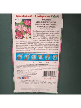 Семена Цветы, Космея, Морская раковина, 0.3 г, цветная упаковка, Седек
