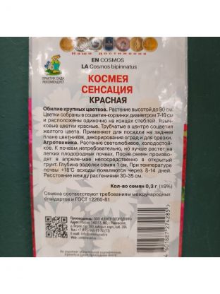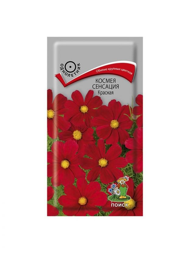 Семена Цветы, Космея, Сенсация Красная, 0.3 г, цветная упаковка, Поиск