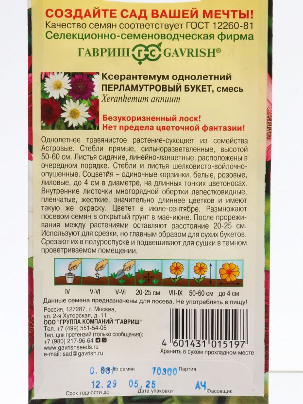 Семена Ксерантемум Перламутровый букет 0.05 г Гавриш — создайте эффектный перламутровый акцент на клумбе или в букете, экономно и удобно для дачи или дома.