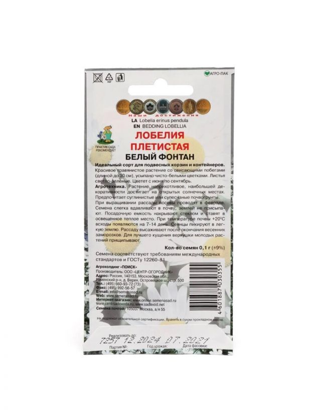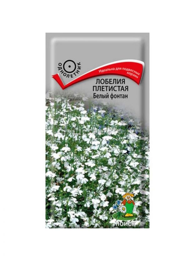 Семена Цветы, Лобелия, Белый фонтан, 0.1 г, плетистая, цветная упаковка, Поиск