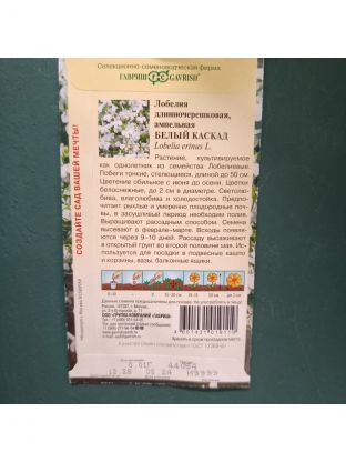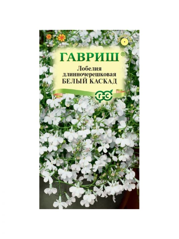 Семена Цветы, Лобелия, Белый каскад, 0.01 г, Цветочная коллекция, ампельная, цветная упаковка, Гавриш