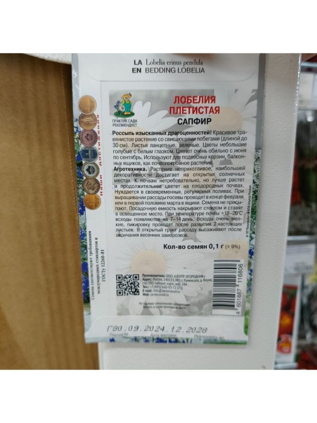 Семена Цветы, Лобелия, Сапфир, 0.1 г, плетистая, цветная упаковка, Поиск