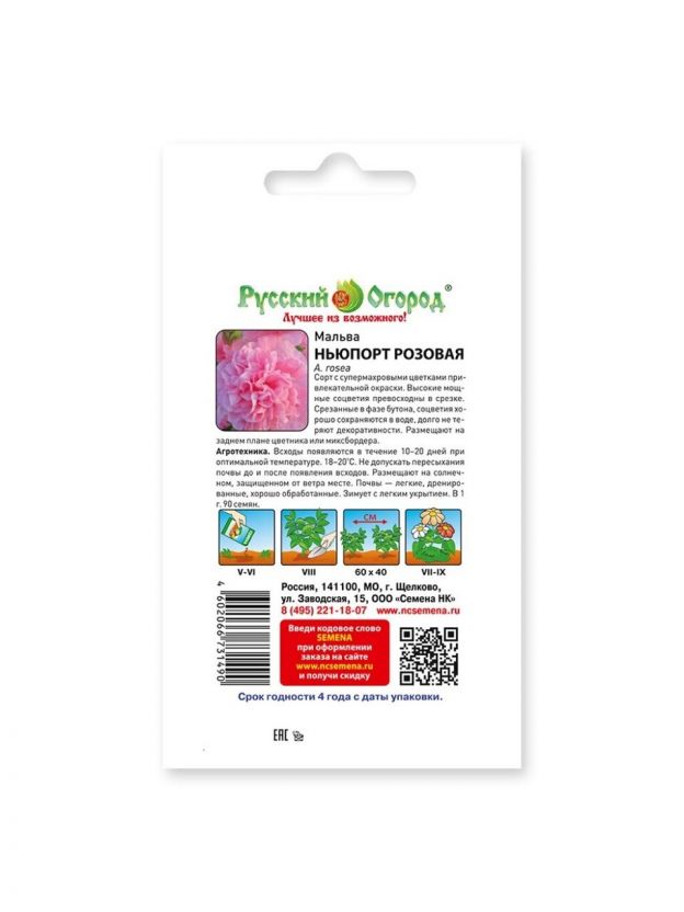 Семена Цветы, Мальва, Ньюпорт, 0.2 г, цветная упаковка, Русский огород