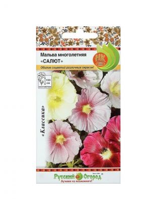 Семена Цветы, Мальва, Салют, 0.2 г, многолетняя, смесь, цветная упаковка, Русский огород