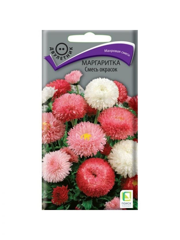 Семена Цветы, Маргаритка, Смесь окрасок, 0.1 г, цветная упаковка, Поиск