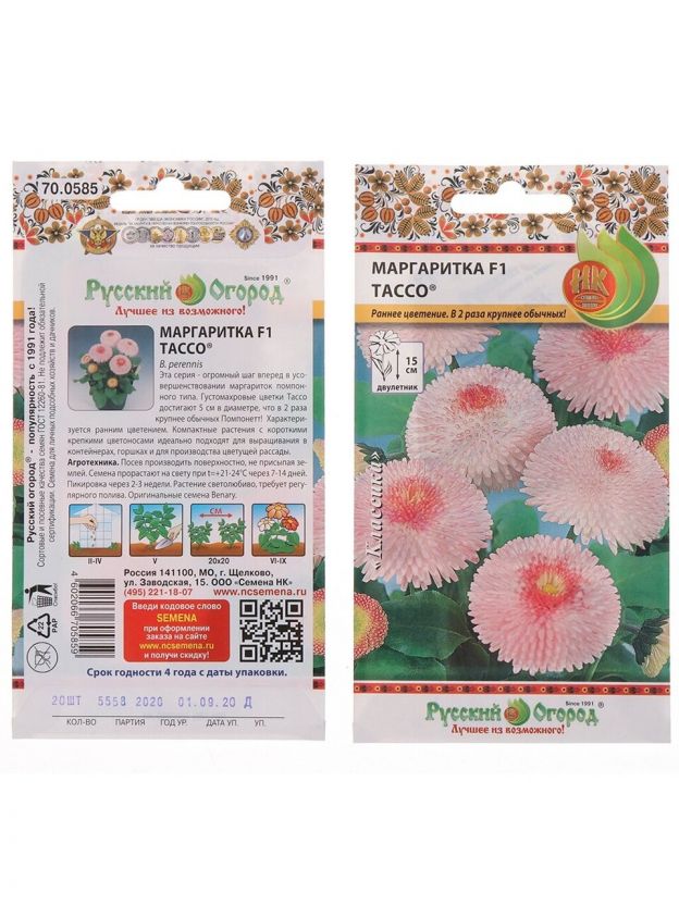 Семена Цветы, Маргаритка, Тассо F1, цветная упаковка, Русский огород