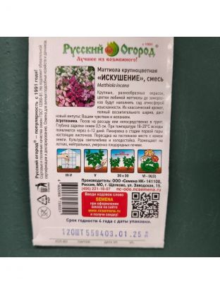 Семена Цветы, Маттиола, Искушение, смесь, цветная упаковка, Русский огород