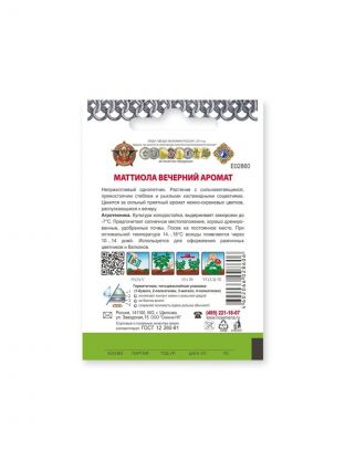 Семена Цветы, Маттиола, Вечерний аромат, 0.3 г, Кольчуга, цветная упаковка, Русский огород