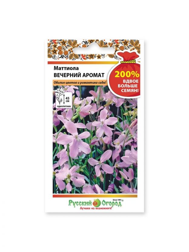 Семена Цветы, Маттиола, Вечерний аромат, 0.6 г, 200%, цветная упаковка, Русский огород