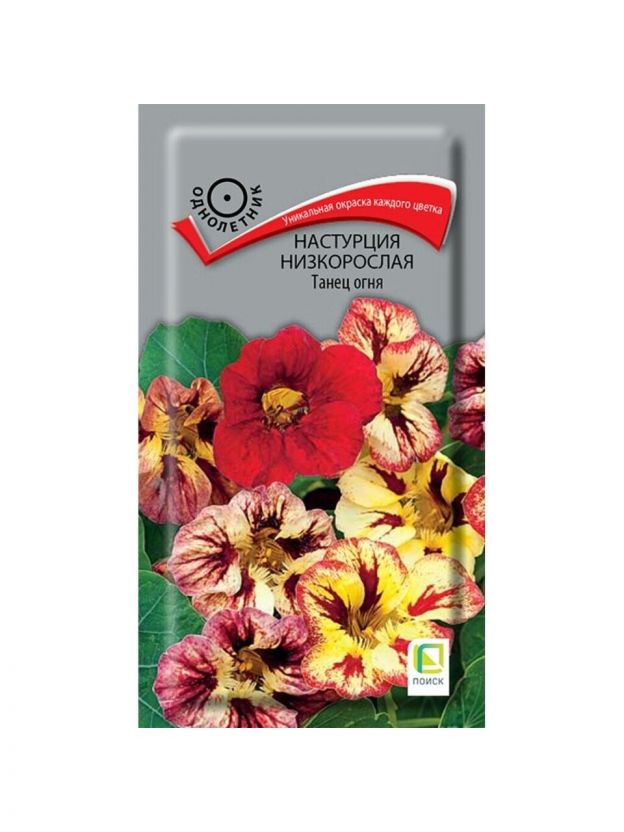 Семена Цветы, Настурция, Танец огня, 1 г, низкорослая, многоцветковая, красная, цветная упаковка, Поиск