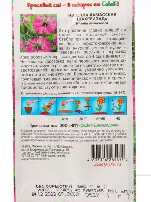 Семена Цветы, Нигелла, Шахеризада, цветная упаковка, Седек