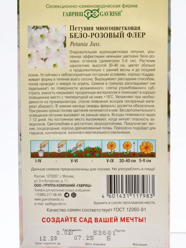 Семена Петуния Бело-розовый флер Гавриш — яркое цветение для вашего сада: устойчивость, простота ухода, экономия времени и бюджета.