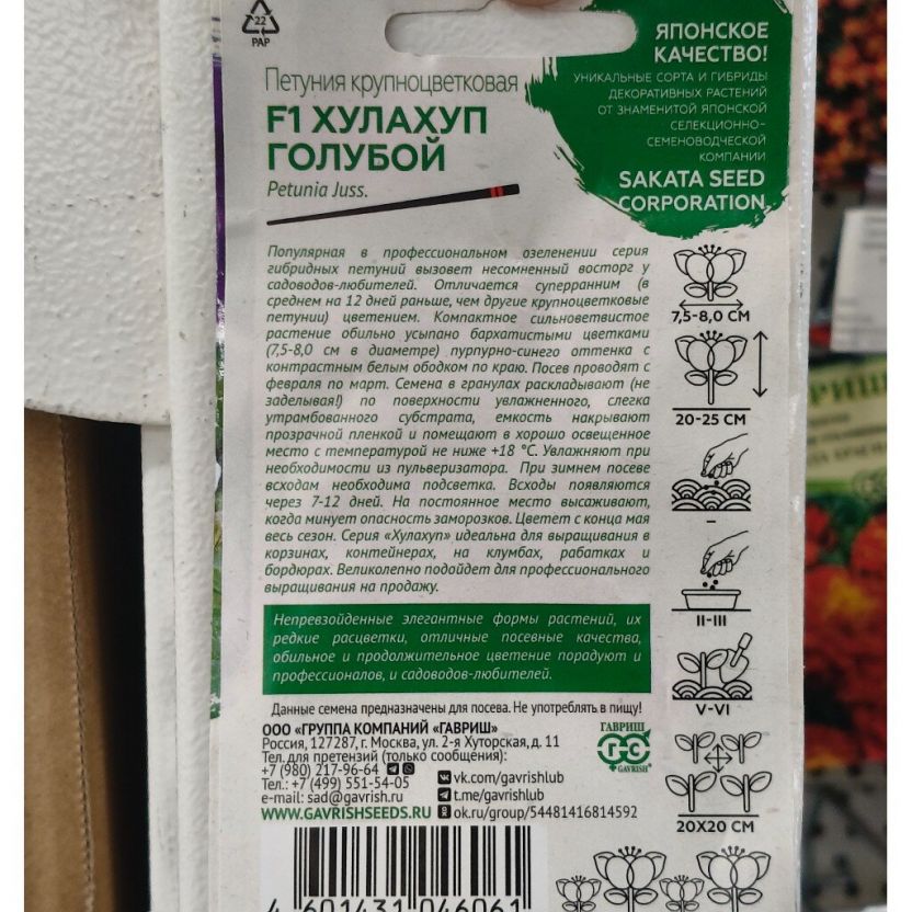 Семена Цветы, Петуния, Хулахуп голубой, цветная упаковка, Гавриш