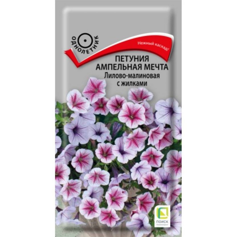 Семена Цветы, Петуния, Мечта лилово-малиновая, ампельная, с жилками, цветная упаковка, Поиск