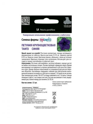 Семена Цветы, Петуния, Танго Синяя, крупноцветковая, цветная упаковка, Поиск