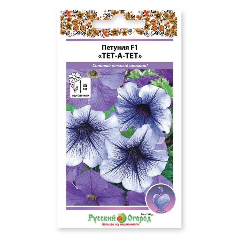 Семена Цветы, Петуния, Тет-а-тет, компактная, смесь, цветная упаковка, Русский огород