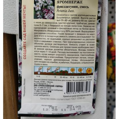 Семена Цветы, Петуния, Яромнерже Фриллитуния бахромчатая, махровая, цветная упаковка, Гавриш