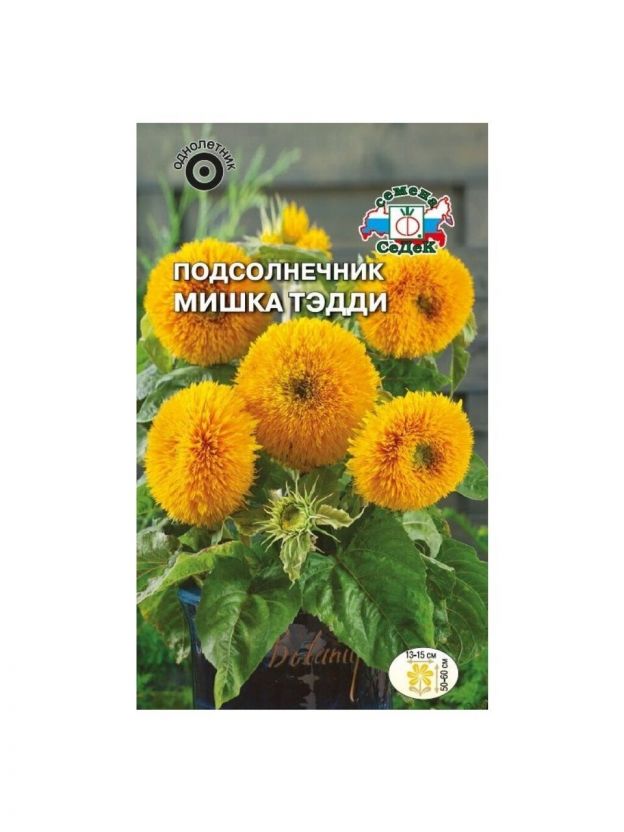 Семена Цветы, Подсолнечник, Мишка Тэдди махровый, низкорослый, цветная упаковка, Седек