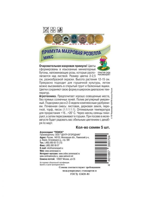 Семена Цветы, Примула, Махровая Розелла Микс, цветная упаковка, Поиск
