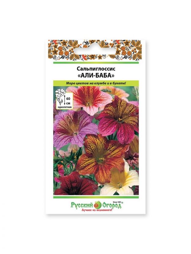 Семена Цветы, Сальпиглоссис, Али-Баба, 0.1 г, цветная упаковка, Русский огород