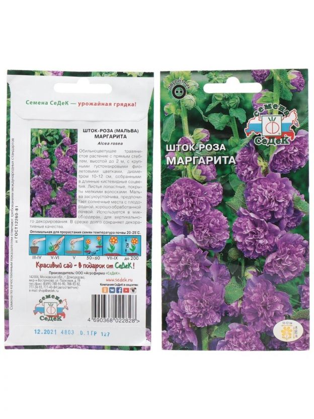 Семена Цветы, Шток-роза, Маргарита фиолетовая, 0.1 г, цветная упаковка, Седек