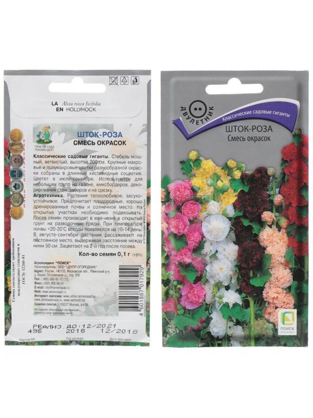 Семена Цветы, Шток-роза, Смесь окрасок, 0.1 г, цветная упаковка, Поиск