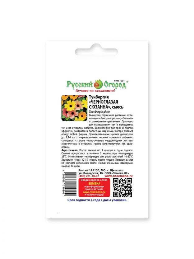 Погрузитесь в мир ярких красок с семенами цветов Тунбергия "Черноглазая Сюзанна" от бренда "Русский огород". Эти однолетние цветы станут настоящим украшением вашего зеленого уголка, привнося в него нотки экзотики и свежести.