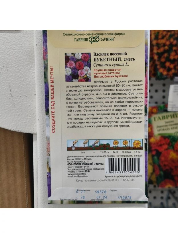 Семена Цветы, Василек, Букетный, 0.2 г, синий, смесь, цветная упаковка, Гавриш
