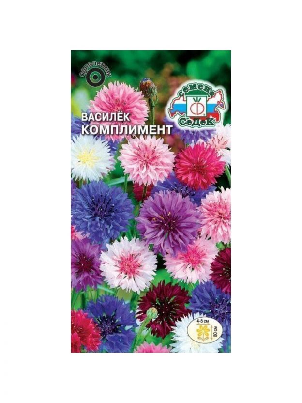 Семена василька Комплимент 0.5 г — яркие цветы для сада и дачи: быстрое цветение, простая посадка, выгодно для начинающих и опытных цветоводов.